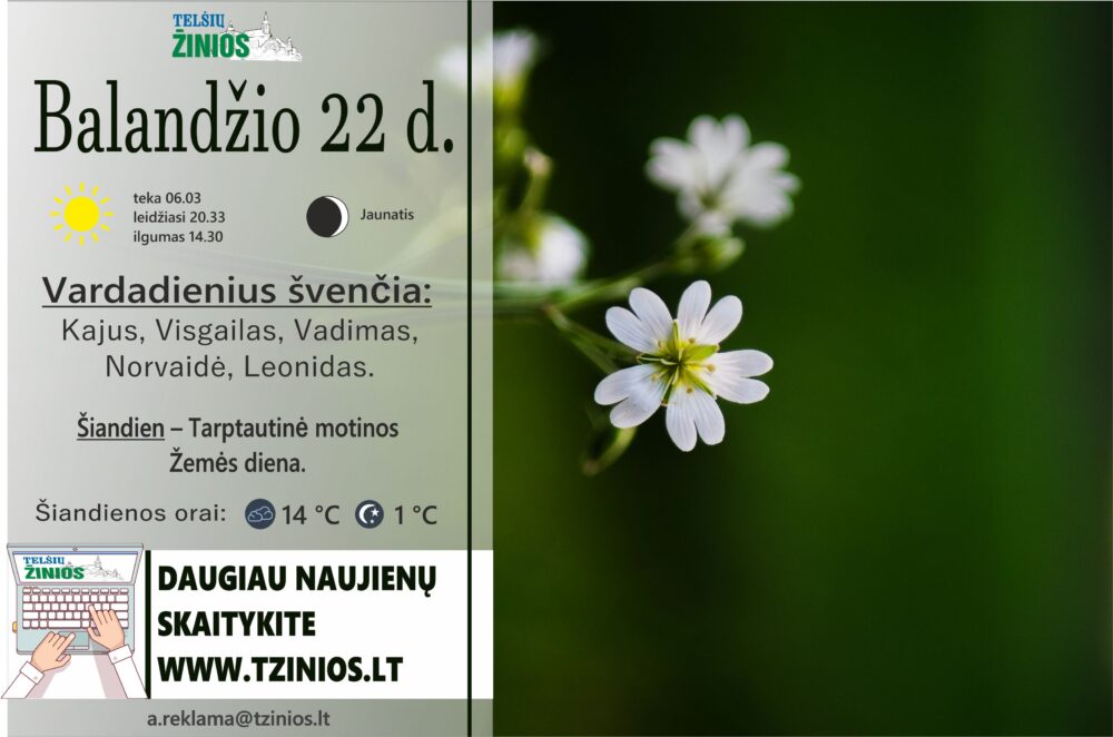 Balandžio 10 dieną Telšių „Bočių“ namuose Telšių miesto pagyvenusių žmonių bendrija „Rudens vakaras“ subūrė bendruomenę į tradicinį renginį – gražiausio...