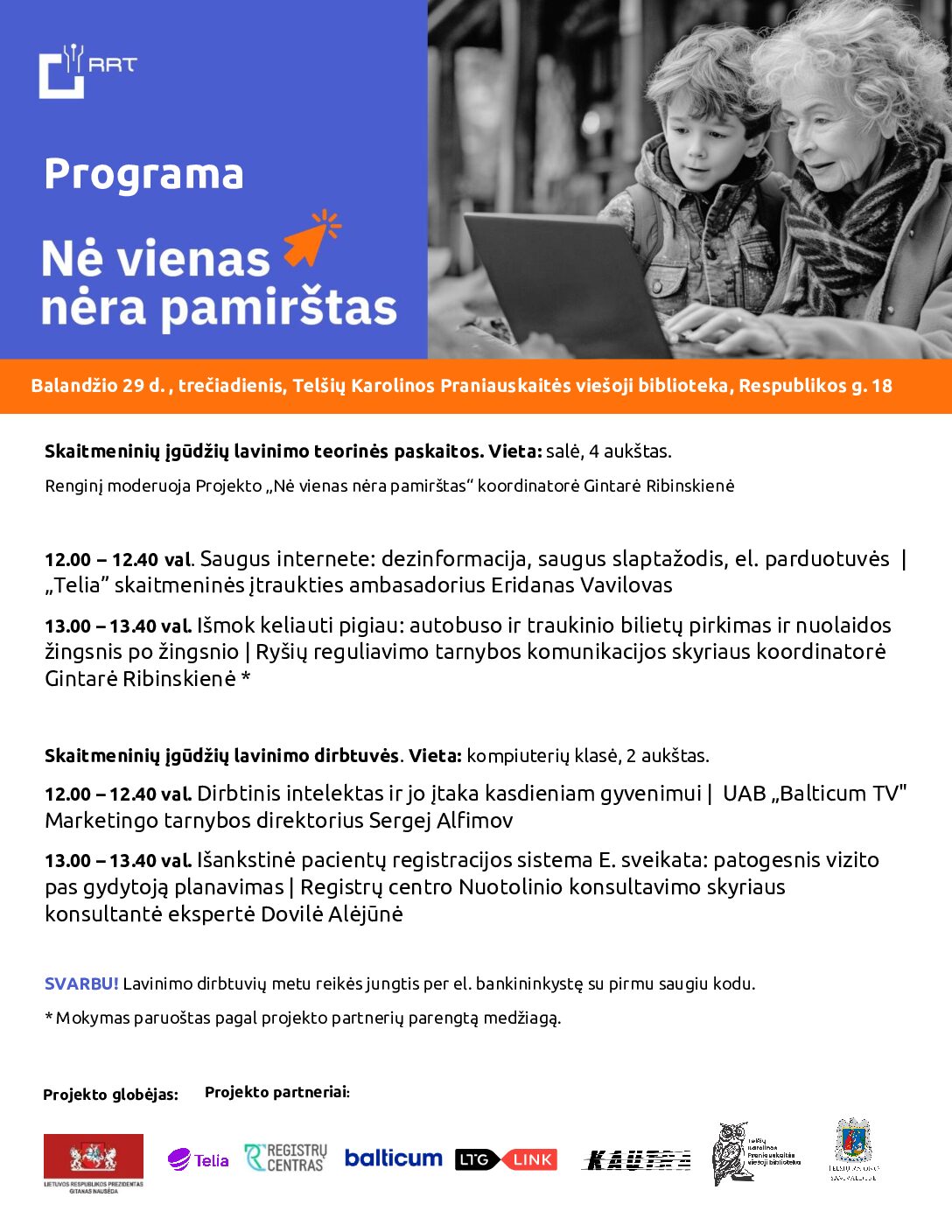 Kovo 29 d., trečiadienį, projektas „Nė vienas nėra pamirštas“ atvyksta į Telšius. Renginio pradžia 12:00 val., iki 13:40 val.