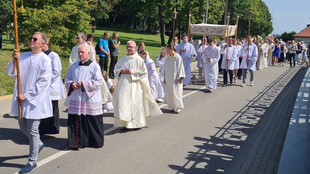 Rugpjūčio 15-ąją Telšių Švč. Mergelės Marijos Ėmimo į dangų bažnyčioje vyko Žolinės atlaidai. Šv. Mišios buvo aukojamos iš papuošto Parapijos namų balkono.