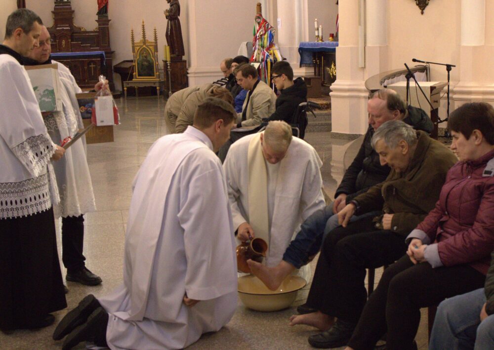 Didžiojo ketvirtadienio šv. Mišių metu klebonas dvylikai tikinčiųjų nuplovė ir nušluostė kojas. „Tai ypatinga apeiga, parodanti, kad kunigo pašaukimas yra tarnauti. Kunigą lengva užgauti, pastumti… Jei kunigas su žmogumi eis į karą, praras jo sielą Dievui, jei nulenks galvą, vis tiek žmogus kada nors supras ir pats suras Dievą, bus išganytas“, – Kunigystės sakramento prasmę aiškino V. Gedvainis.
