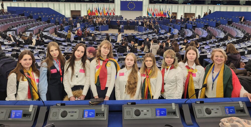 Vasario 6-ąją aštuonių merginų komanda dalyvavo „Euroscolos“ renginyje Europos Parlamente. Plenarinių posėdžių salėje renginį atidarė Europos Parlamento pirmininkė Roberta Metsola. Diskusijose apie sveikatos apsaugą, paramą Ukrainai, skurdo ir socialinės atskirties mažinimą dalyvės turėjo galimybę išgirsti Europos Parlamento narių įžvalgas ir pačios aktyviai įsitraukti. Mūsų gimnazijos atstovės Martyna, Liepa ir Akvilė drąsiai uždavė klausimus beveik 700 jaunuolių auditorijoje ir atsakingai atstovavo mokyklai tarptautiniame kontekste. Ypač įsimintina buvo parlamentarų darbo simuliacija – debatų, kompromisų paieškų ir balsavimo procesas, leidęs praktiškai patirti, kaip gimsta sprendimai Europos Sąjungoje. Renginys iškilmingai užbaigtas skambant ES himnui „Odė džiaugsmui“.