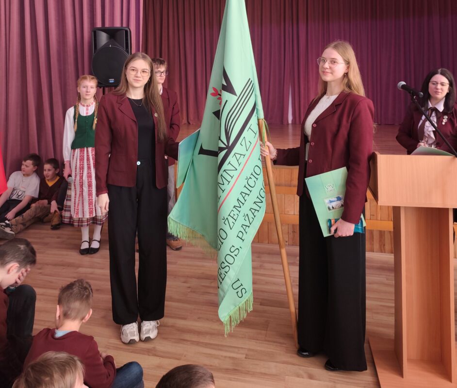 Renginys prasidėjo visai gimnazijos bendruomenei sugiedojus Lietuvos valstybės himną.