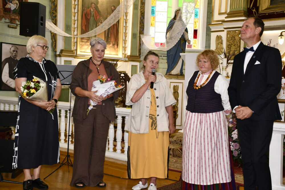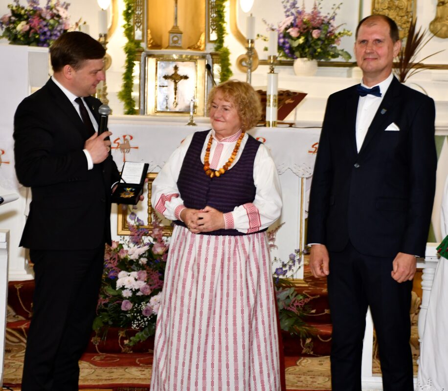Nevarėnų krašto garbės piliečio regalijas nominantei įteikė Telšių rajono savivaldybės meras Tomas Katkus ir Nevarėnų seniūnijos seniūnas Darius Martinkus.