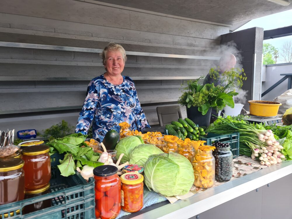 Turguje prekiauja ir Elytė, kaip pati sakė, dar nuo Nepriklausomybės laikų. Ant jos prekystalio – įvairios vaistažolės, daržovės, medus ir pačios rinktos voveraitės, kurių šiemet, pasak jos, netrūksta. Moteris džiaugiasi naujuoju turgumi: šiuolaikiškos sąlygos, tvarka ir patogumai daro prekybą malonesnę.