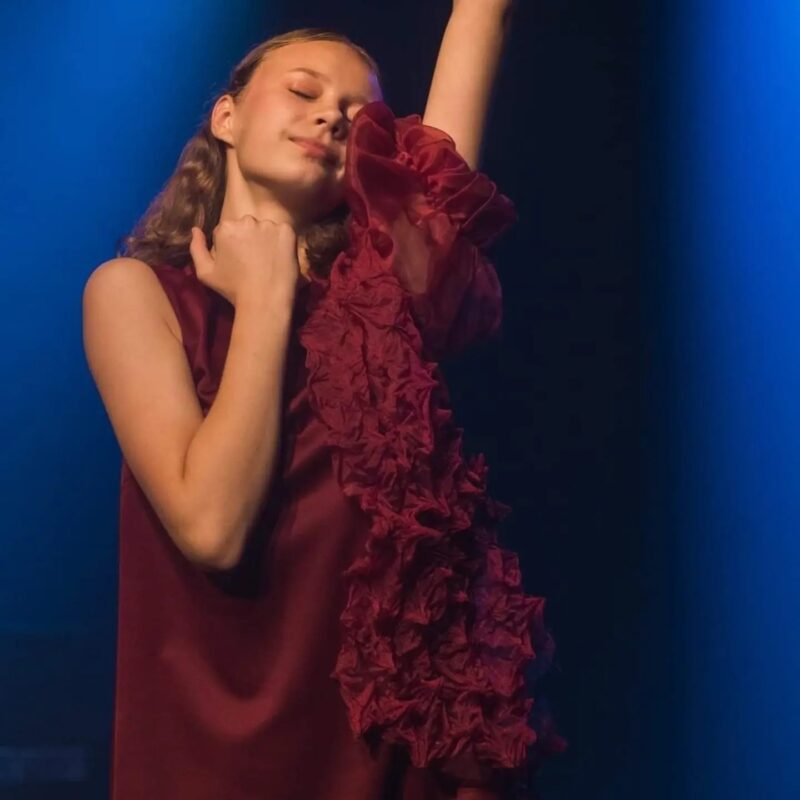 – Vaidinau 4 spektakliuose: 2021 m. „Skaitome apie meilę“, 2022 m. spektaklyje apie Vytautą Mačernį „Karūna poetui“, 2023 m. „Berniukas, kuris nenorėjo užaugti“ – Mažojo Princo Rožę, o 2025 m. spektaklyje „Gyvenimas, kuriame aš ne namie“ man buvo patikėtas pagrindinis Jutos vaidmuo. Vaidinant paauglę Jutą labai svarbios pauzės, nes būtent jų metu žiūrovas gali pajusti tai, ko Juta neištaria garsiai: jos skausmą, trapumą. Tai vaidmuo, kuris verčia ne tik vaidinti, bet ir jausti iki pat gelmių.