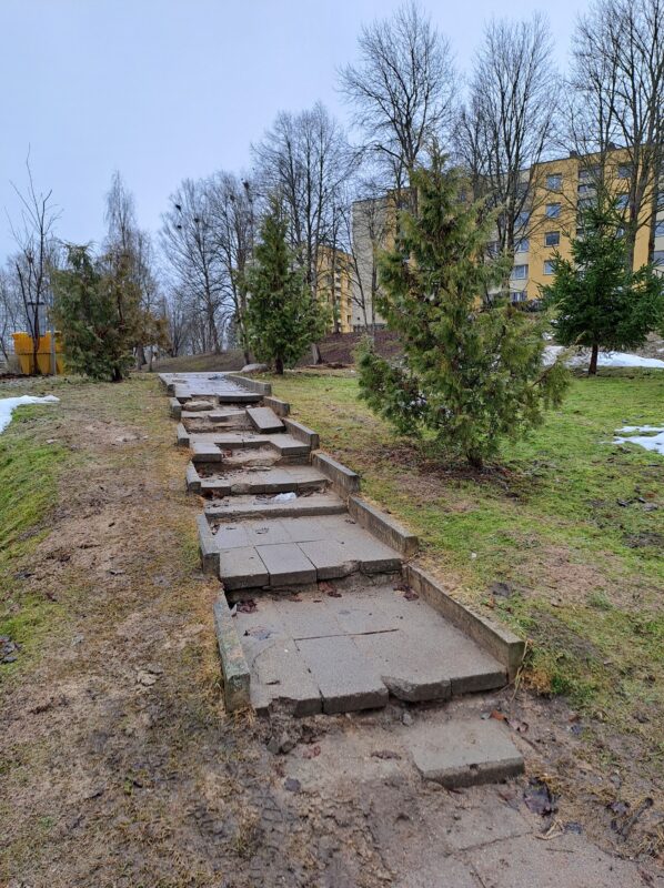 „Tai iš po šios žiemos daug kur pamatėm, ko nematėm. Laiptai daugelyje miesto vietų irstantys nuo druskos gausumo“, – komentavo Toma Šeškauskaitė-Gaurilovienė.