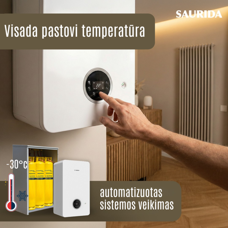 – Tai vienas didžiausių šios sistemos pranašumų. „Saurida“ naudoja specialias propano dujas, kurios efektyviai garuoja ir dega net esant –42 °C šalčiui. Praktika rodo, kad kai termometras nukrenta iki –30 °C, kiti modernūs sprendimai (pavyzdžiui, šilumos siurbliai) pradeda vargti, o sąskaitos už elektrą šoka į viršų. Dujinis šildymas tokiomis sąlygomis išlieka stabilus, užtikrindamas prognozuojamas sąnaudas ir pastovią šilumą namuose.