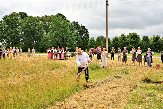 Skambant folkloro kolektyvo „Ašvija“ dainoms, festivalio dalyviai – penkių Mažeikių rajono kaimų komandos – draugiškai rungėsi dėl geriausio šieno pjovėjo, geriausios grėbėjos ir geriausios pradalgės daužytojos vardo.
