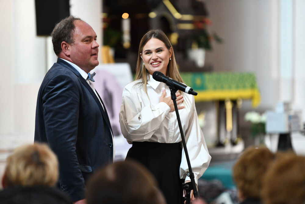 Šv. Mišias aukojęs parapijos klebonas Vytautas Gedvainis džiaugėsi matydamas bažnyčioje tiek tikinčiųjų, kvietė neskubėti skirstytis po pamaldų – juk laukia puiki muzikos šventė – tikra atgaiva sielai. Dvasininkas dėkojo Plungės kultūros centrui ir jo direktoriui Romui Matuliui už gražią bendrystę ir draugystę: Sakralinės muzikos šventė, kurią organizuoja kultūros centras, po bažnyčios skliautais vyksta ne pirmą kartą. Šis renginys – graži tąsa neseniai mūsų mieste pasibaigusio Tarptautinio Mykolo Oginskio festivalio.