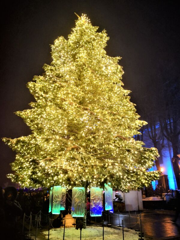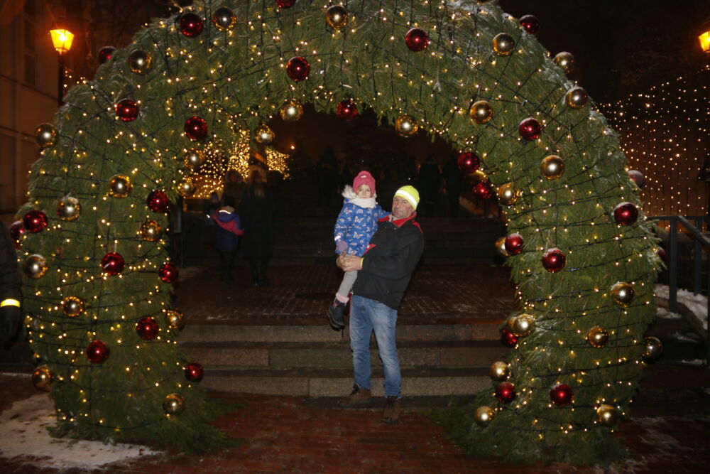 Ka­lė­dų eg­lės įžie­bi­mo šven­tė vy­ko Ka­ted­ros aikš­tė­je, į ku­rią tel­šiš­kiai ir mies­to sve­čiai žen­gė pro di­džiu­lę ar­ką ir ke­lia­vo švie­sos ta­ku Ka­lė­dų ža­lias­ka­rės link.