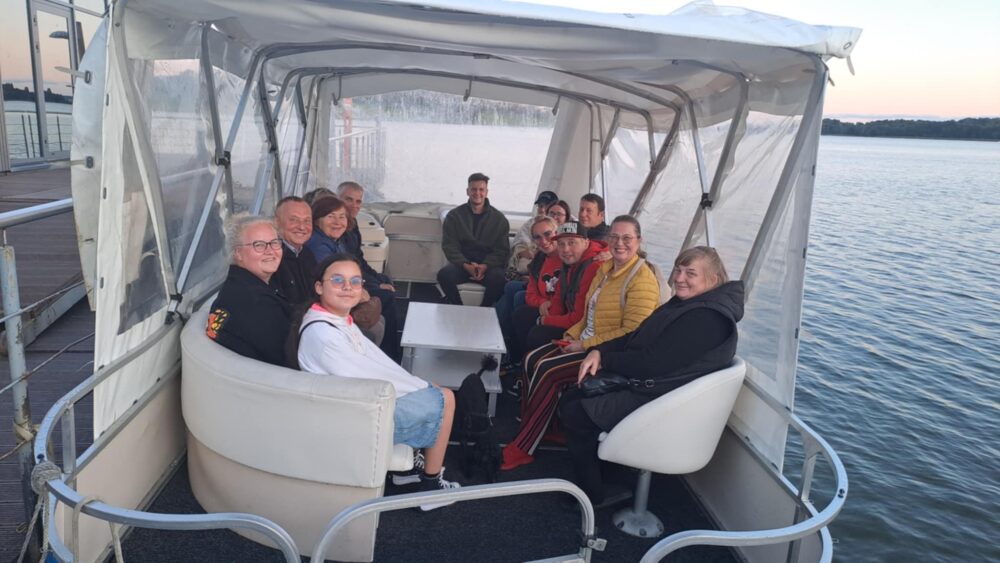 Pasiplaukiojimas pontoniniu laivu Masčio ežere.