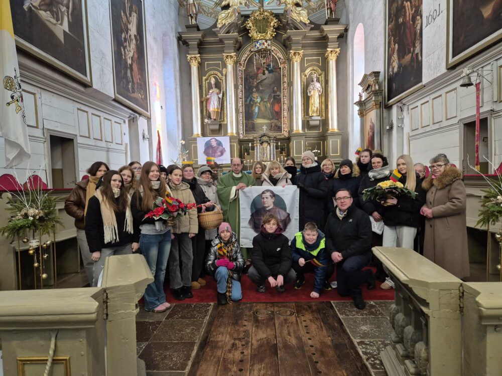 Per šv. Mišias prie altoriaus atneštos puokštės ir žvakės buvo pašventintos.